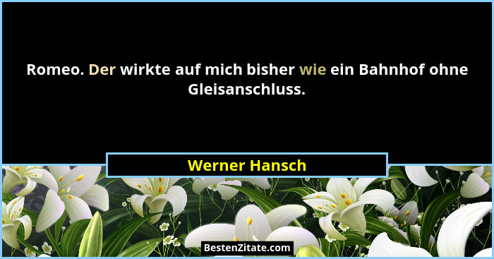 Romeo. Der wirkte auf mich bisher wie ein Bahnhof ohne Gleisanschluss.
