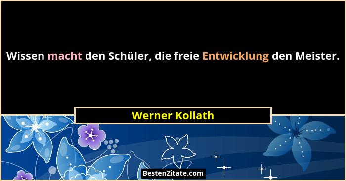 Wissen macht den Schüler, die freie Entwicklung den Meister.