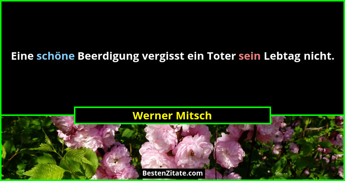 Eine schöne Beerdigung vergisst ein Toter sein Lebtag nicht.