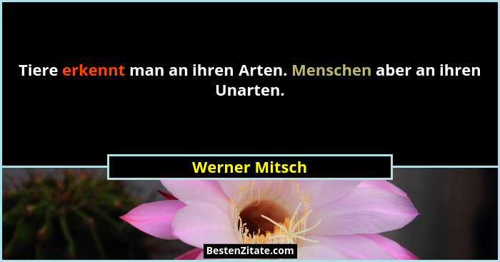Tiere erkennt man an ihren Arten. Menschen aber an ihren Unarten.