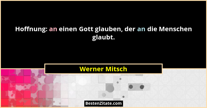 Hoffnung: an einen Gott glauben, der an die Menschen glaubt.