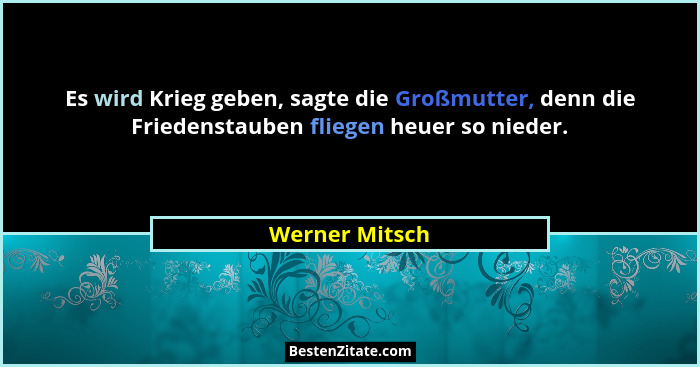 Es wird Krieg geben, sagte die Großmutter, denn die Friedenstauben fliegen heuer so nieder.