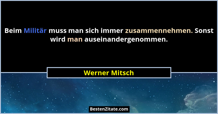 Beim Militär muss man sich immer zusammennehmen. Sonst wird man auseinandergenommen.