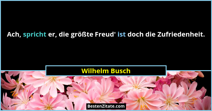 Ach, spricht er, die größte Freud' ist doch die Zufriedenheit.