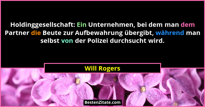 Holdinggesellschaft: Ein Unternehmen, bei dem man dem Partner die Beute zur Aufbewahrung übergibt, während man selbst von der Polizei durchsucht wird.