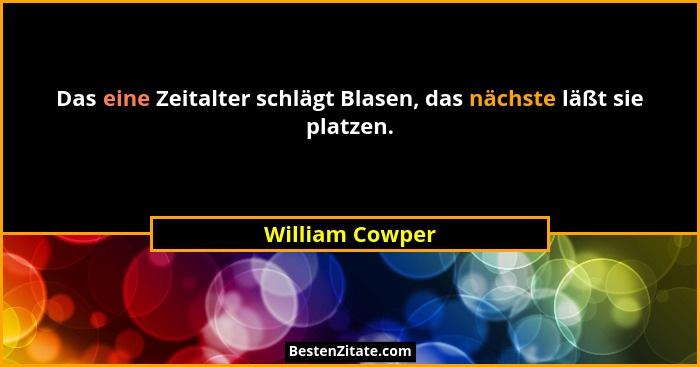 Das eine Zeitalter schlägt Blasen, das nächste läßt sie platzen.