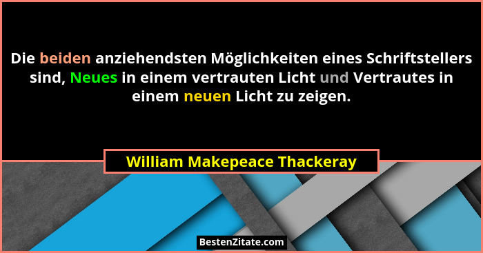 Die beiden anziehendsten Möglichkeiten eines Schriftstellers sind, Neues in einem vertrauten Licht und Vertrautes in einem neuen Licht zu zeigen.