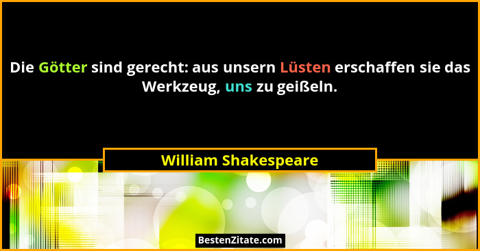 Die Götter sind gerecht: aus unsern Lüsten erschaffen sie das Werkzeug, uns zu geißeln.