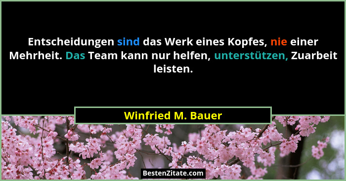 Entscheidungen sind das Werk eines Kopfes, nie einer Mehrheit. Das Team kann nur helfen, unterstützen, Zuarbeit leisten.