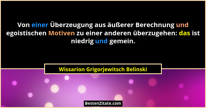Von einer Überzeugung aus äußerer Berechnung und egoistischen Motiven zu einer anderen überzugehen: das ist niedrig und gemein.