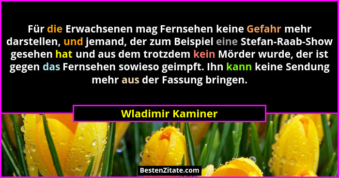 Für die Erwachsenen mag Fernsehen keine Gefahr mehr darstellen, und jemand, der zum Beispiel eine Stefan-Raab-Show gesehen hat und... - Wladimir Kaminer