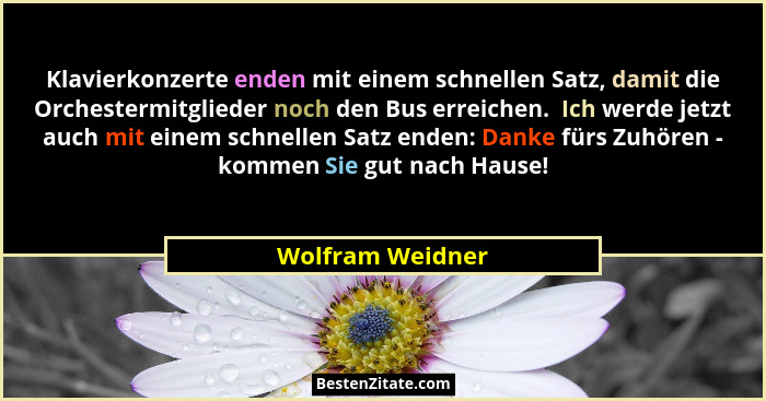 Klavierkonzerte enden mit einem schnellen Satz, damit die Orchestermitglieder noch den Bus erreichen. Ich werde jetzt auch mit einem schnellen Satz enden: Danke fürs Zuhören - kommen Sie gut nach Hause!