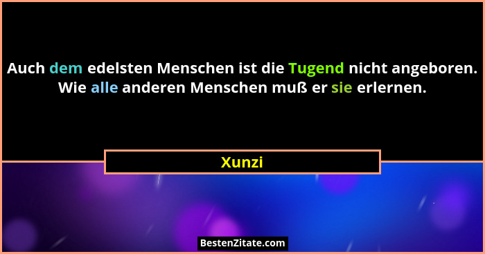Auch dem edelsten Menschen ist die Tugend nicht angeboren. Wie alle anderen Menschen muß er sie erlernen.