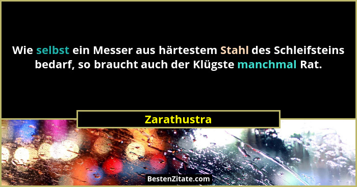 Wie selbst ein Messer aus härtestem Stahl des Schleifsteins bedarf, so braucht auch der Klügste manchmal Rat.