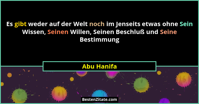 Es gibt weder auf der Welt noch im Jenseits etwas ohne Sein Wissen, Seinen Willen, Seinen Beschluß und Seine Bestimmung