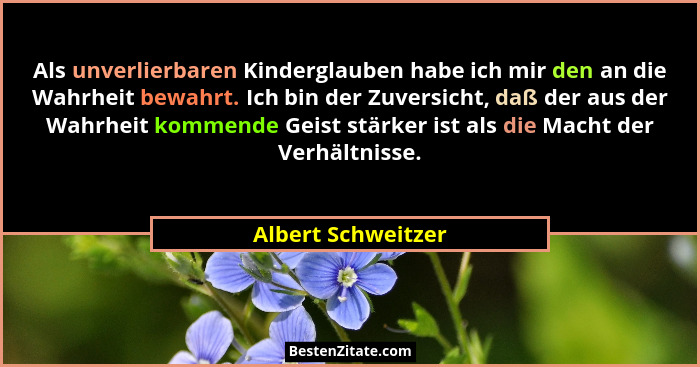 Als unverlierbaren Kinderglauben habe ich mir den an die Wahrheit bewahrt. Ich bin der Zuversicht, daß der aus der Wahrheit kommende Geist stärker ist als die Macht der Verhältnisse.