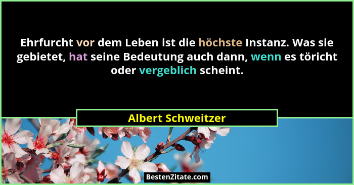 Ehrfurcht vor dem Leben ist die höchste Instanz. Was sie gebietet, hat seine Bedeutung auch dann, wenn es töricht oder vergeblich scheint.
