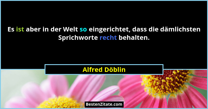 Es ist aber in der Welt so eingerichtet, dass die dämlichsten Sprichworte recht behalten.