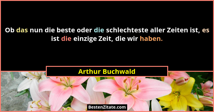 Ob das nun die beste oder die schlechteste aller Zeiten ist, es ist die einzige Zeit, die wir haben.