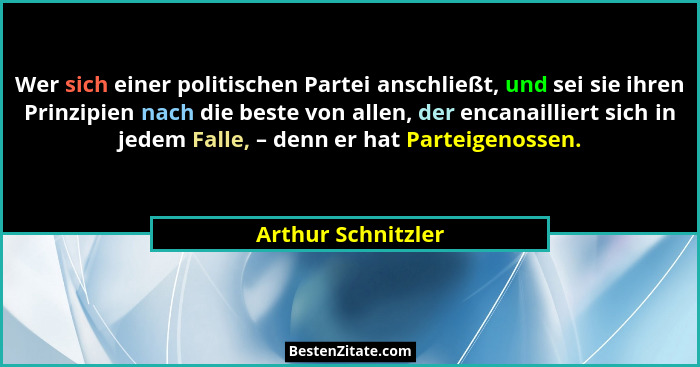 Wer sich einer politischen Partei anschließt, und sei sie ihren Prinzipien nach die beste von allen, der encanailliert sich in jedem Falle, – denn er hat Parteigenossen.