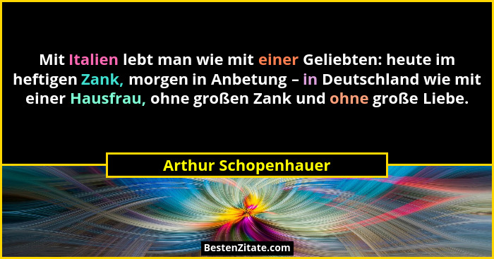 Mit Italien lebt man wie mit einer Geliebten: heute im heftigen Zank, morgen in Anbetung – in Deutschland wie mit einer Hausfrau, ohne großen Zank und ohne große Liebe.