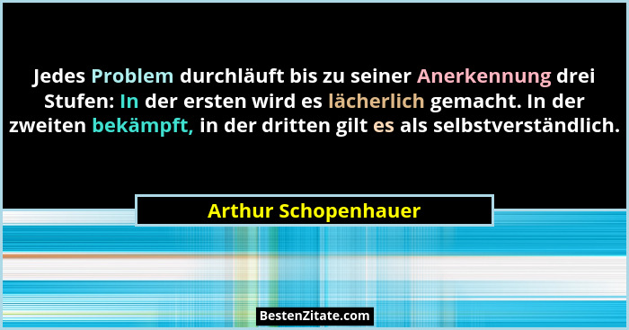 Jedes Problem durchläuft bis zu seiner Anerkennung drei Stufen: In der ersten wird es lächerlich gemacht. In der zweiten bekämpft, in der dritten gilt es als selbstverständlich.