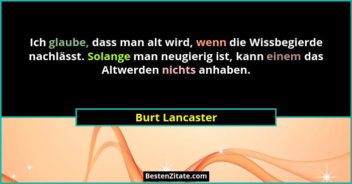 Ich glaube, dass man alt wird, wenn die Wissbegierde nachlässt. Solange man neugierig ist, kann einem das Altwerden nichts anhaben.