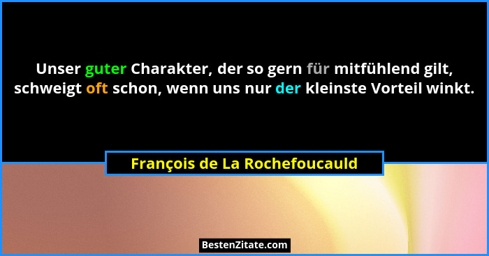 Unser guter Charakter, der so gern für mitfühlend gilt, schweigt oft schon, wenn uns nur der kleinste Vorteil winkt.