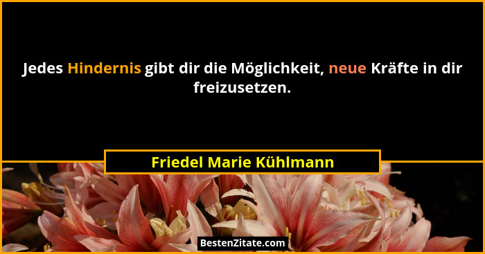 Jedes Hindernis gibt dir die Möglichkeit, neue Kräfte in dir freizusetzen.