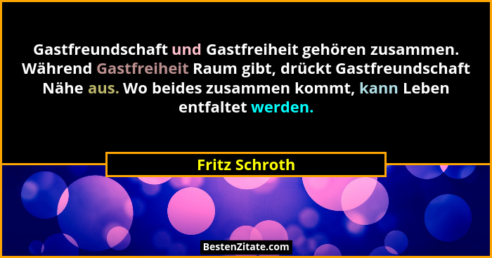 Gastfreundschaft und Gastfreiheit gehören zusammen. Während Gastfreiheit Raum gibt, drückt Gastfreundschaft Nähe aus. Wo beides zusammen kommt, kann Leben entfaltet werden.