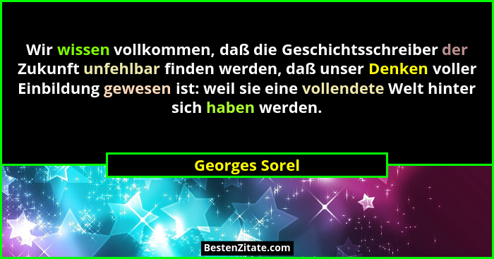 Wir wissen vollkommen, daß die Geschichtsschreiber der Zukunft unfehlbar finden werden, daß unser Denken voller Einbildung gewesen ist: weil sie eine vollendete Welt hinter sich haben werden.