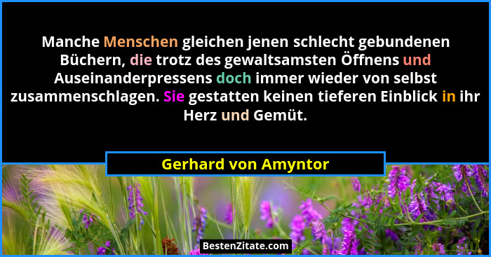 Manche Menschen gleichen jenen schlecht gebundenen Büchern, die trotz des gewaltsamsten Öffnens und Auseinanderpressens doch immer wieder von selbst zusammenschlagen. Sie gestatten keinen tieferen Einblick in ihr Herz und Gemüt.