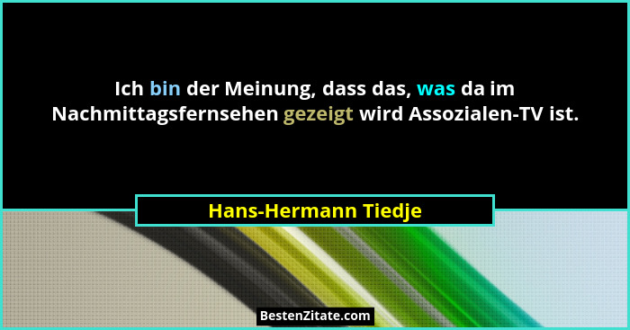 Ich bin der Meinung, dass das, was da im Nachmittagsfernsehen gezeigt wird Assozialen-TV ist.