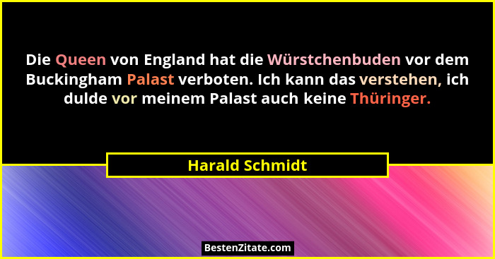 Die Queen von England hat die Würstchenbuden vor dem Buckingham Palast verboten. Ich kann das verstehen, ich dulde vor meinem Palast auch keine Thüringer.