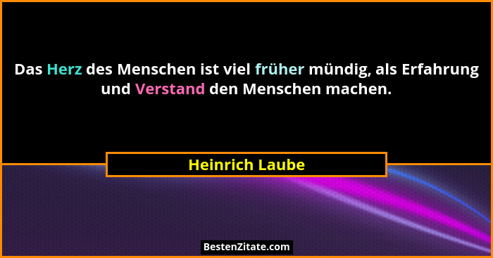 Das Herz des Menschen ist viel früher mündig, als Erfahrung und Verstand den Menschen machen.