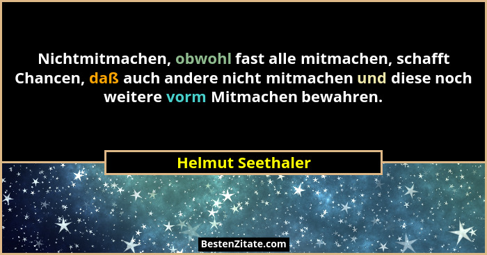 Nichtmitmachen, obwohl fast alle mitmachen, schafft Chancen, daß auch andere nicht mitmachen und diese noch weitere vorm Mitmachen bewahren.