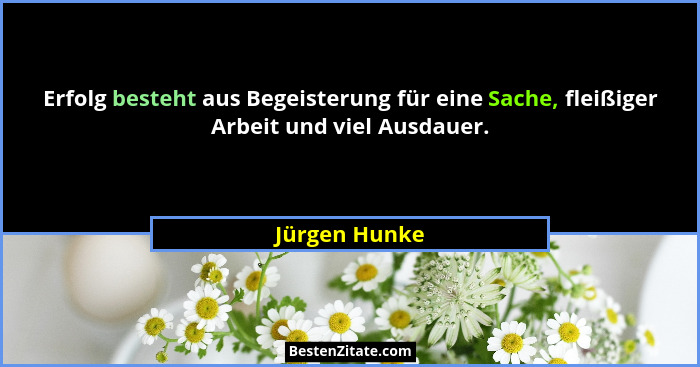 Erfolg besteht aus Begeisterung für eine Sache, fleißiger Arbeit und viel Ausdauer.