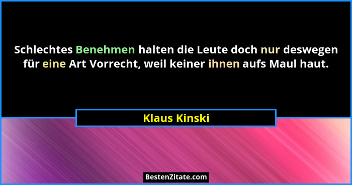 Schlechtes Benehmen halten die Leute doch nur deswegen für eine Art Vorrecht, weil keiner ihnen aufs Maul haut.