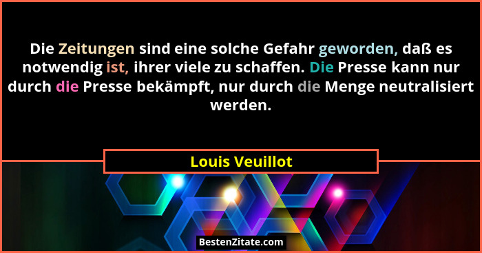 Die Zeitungen sind eine solche Gefahr geworden, daß es notwendig ist, ihrer viele zu schaffen. Die Presse kann nur durch die Presse bekämpft, nur durch die Menge neutralisiert werden.
