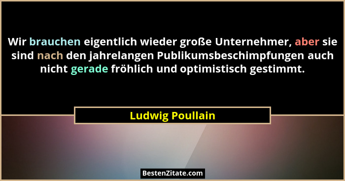 Wir brauchen eigentlich wieder große Unternehmer, aber sie sind nach den jahrelangen Publikumsbeschimpfungen auch nicht gerade fröhlich und optimistisch gestimmt.