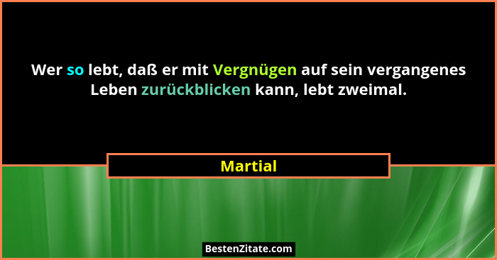 Wer so lebt, daß er mit Vergnügen auf sein vergangenes Leben zurückblicken kann, lebt zweimal.