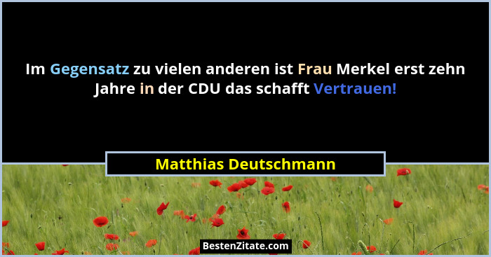 Im Gegensatz zu vielen anderen ist Frau Merkel erst zehn Jahre in der CDU das schafft Vertrauen!