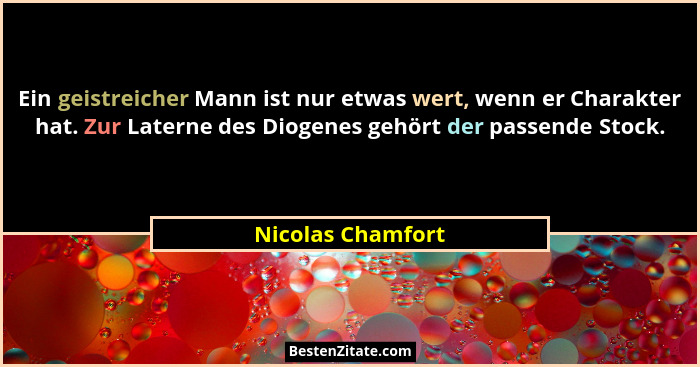 Ein geistreicher Mann ist nur etwas wert, wenn er Charakter hat. Zur Laterne des Diogenes gehört der passende Stock.