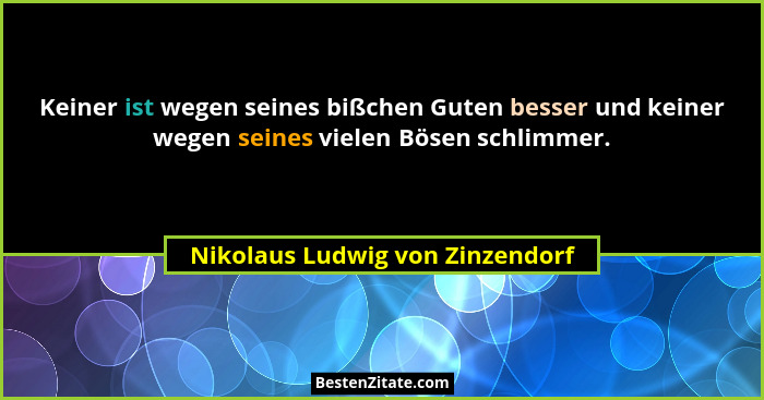 Keiner ist wegen seines bißchen Guten besser und keiner wegen seines vielen Bösen schlimmer.