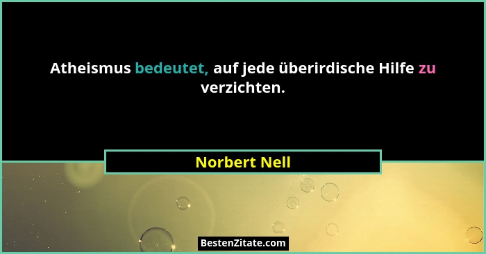 Atheismus bedeutet, auf jede überirdische Hilfe zu verzichten.