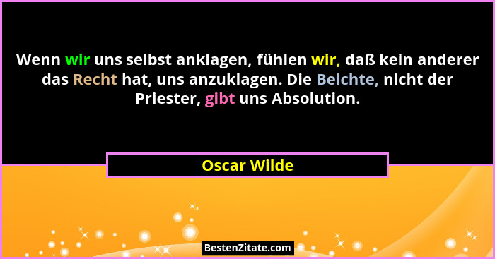 Wenn wir uns selbst anklagen, fühlen wir, daß kein anderer das Recht hat, uns anzuklagen. Die Beichte, nicht der Priester, gibt uns Absolution.
