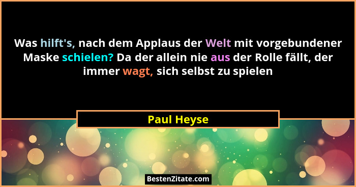 Was hilft's, nach dem Applaus der Welt mit vorgebundener Maske schielen? Da der allein nie aus der Rolle fällt, der immer wagt, sich selbst zu spielen