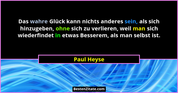 Das wahre Glück kann nichts anderes sein, als sich hinzugeben, ohne sich zu verlieren, weil man sich wiederfindet in etwas Besserem, als man selbst ist.