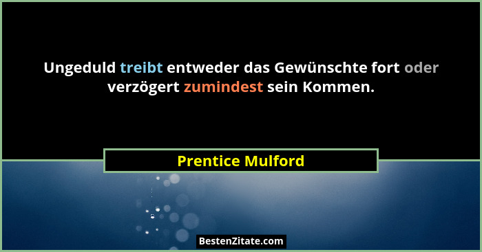 Ungeduld treibt entweder das Gewünschte fort oder verzögert zumindest sein Kommen.