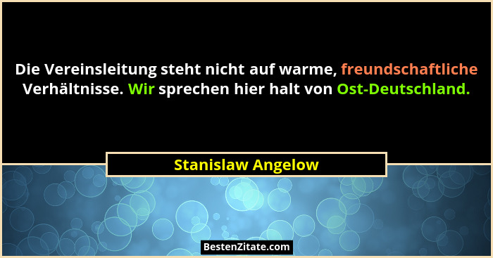 Die Vereinsleitung steht nicht auf warme, freundschaftliche Verhältnisse. Wir sprechen hier halt von Ost-Deutschland.